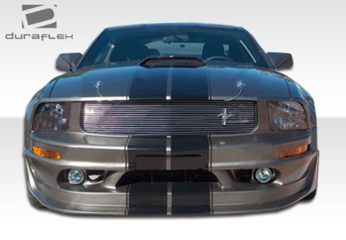 Extreme Dimensions Polyurethane Ford Mustang V6 Polyurethane Cobra R Front Bumper 1pc > 2005-2009 . Polyurethane is a flexible body kit material similar to most of the original bumpers on existing automobiles. Most urethane body kit parts are much more durable and forgiving than duraflex or fiberglass, and fit similar to OEM parts due to the nature of the closed molding process during manufacturing. The downside to urethane is that the parts are heavier than their fiberglass counterparts and while urethane is almost indestructible it is much harder to fix when damaged, also many urethane parts do not include mesh grille. For instance, if you hit a curb hard with a fiberglass part it would probably crack or break, but if you hit the same curb with a urethane part it would most likely just flex with the curb and not break. Though urethane body kits are NOT indestructable, they are more forgiving. In general, urethane body kits are more expensive than fiberglass body kits. However, they are recommended for the individual that wants OEM specifications for fitment and durability.Featuring:Close to OEM fitmentHighly flexible, much more than FRPMuch more durable than fiberglassDiamond cut metal mesh available for purchase