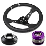 NRG-SRK-141H+016BK-S+200PP, NRG Innovations 13.78" 350mm 3" Deep Dish Style Black Leather Silver Center Marking Racing Steering Wheel Combo with 6 Hole Short Hub Adapter with Gen 2.0 Purple Quick Release Kit SRK-141H