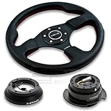| ✚✚✚ NRG-SRK-100H+012R+250BC, NRG Innovations 12.5" 320mm Black Leather Red Stitch Button Racing Steering Wheel Combo with 6 Hole Short Hub Adapter with Gen 2.5 Black Chrome Quick Release Kit SRK-100H NRG Quick Release features many options that conventional ball-locking quick release system do not. It is specially engineered with raised sections to prevent the scratching and stretching of the hub while a self locking feature adds increased safety and functionality. Features racing styled for added style and look. Each unit is made from the highest quality aircraft grade aluminum and is anodized for maximum durability and finish.